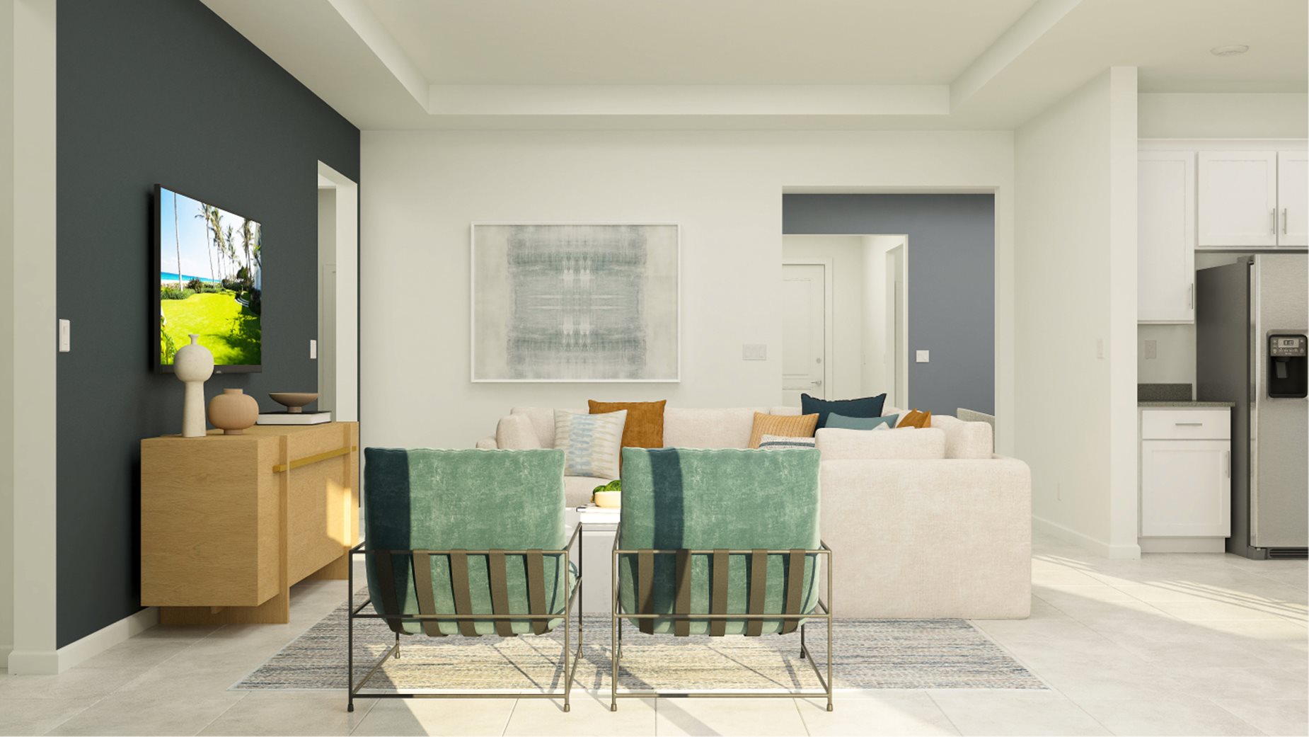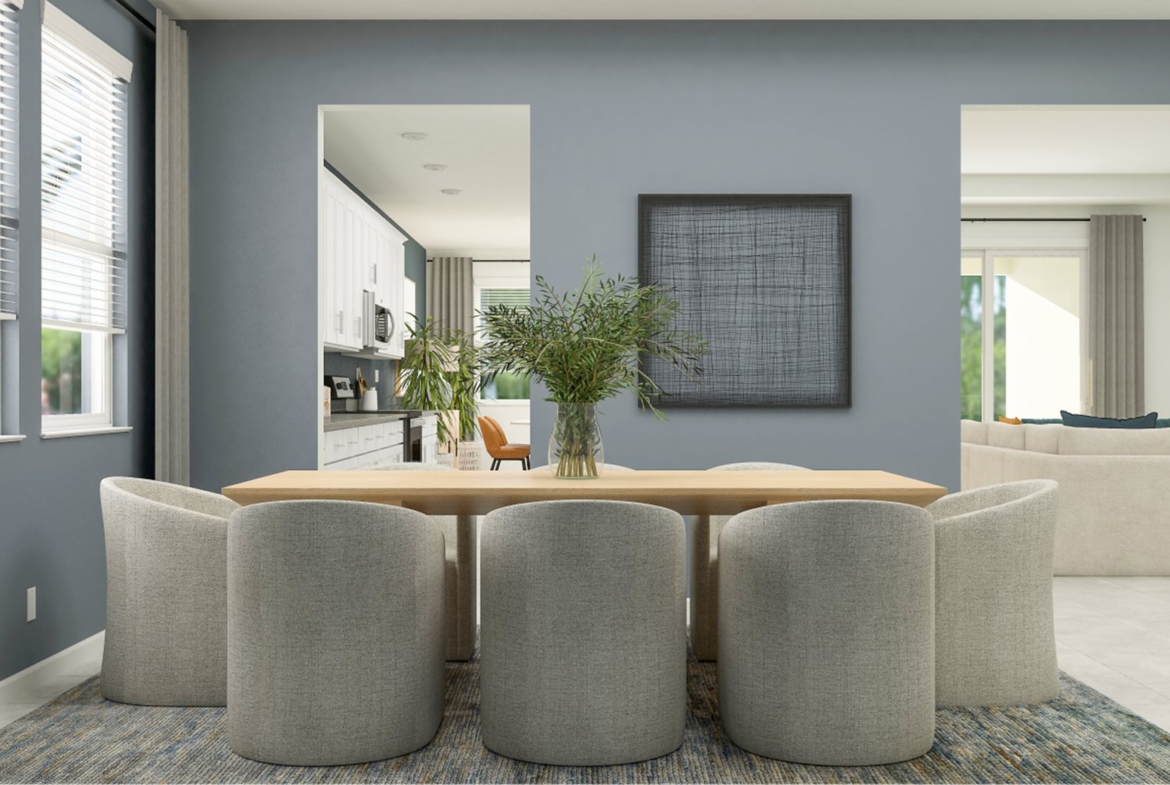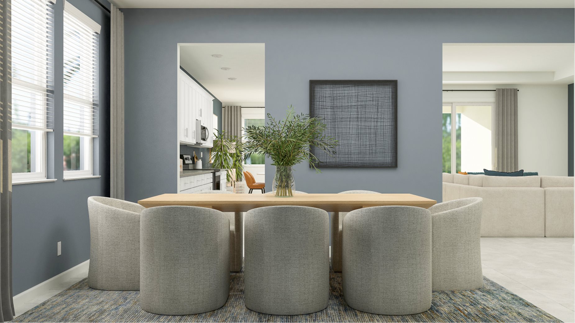 This sprawling single-story home emphasizes elegance and ease of living. Down the foyer is a formal dining room that complements a chef-ready kitchen, casual breakfast nook and spacious family room, plus an attached lanai. Framing the sides of the home are three secondary bedrooms and a luxurious owner’s suite with a spa-style bathroom. An enviable three-car garage provides versatile storage room.